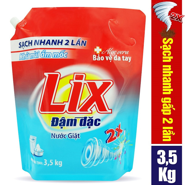 - Nước giặt Lix sạch thơm hương ngàn hoa túi 3.5kg hương hoa thơm mát, sử dụng cho giặt tay, giặt máy cửa trên. Nước giặt Lix với công nghệ mới có khả năng loại bỏ mọi vết bẩn cứng đầu như: vết cà phê, vết bẩn dầu mỡ…nước giặt dạng đậm đặc không để lại cặn như bột giặt thông thường.