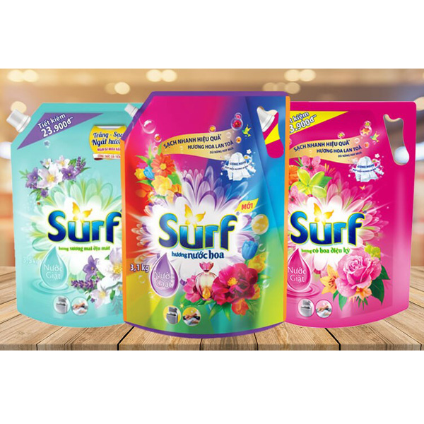 Surf là thương hiệu chuyên về các sản phẩm chăm sóc và vệ sinh nhà cửa được ra đời từ năm 1959. Surf được sử dụng rộng rãi ở châu Âu, Mỹ và rất nhiều quốc gia trên thế giới. Các sản phẩm giặt xả của Surf được nhiều người ưa chuộng chọn dùng bởi giá cả mềm lại có hiệu quả tốt, giữ cho áo quần sạch thơm tinh tươm.
